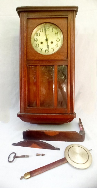 RELÓGIO, um (1) carrilhão de parede, marca FMS encimada por águia (Friedrich Mauthe, sediada em Schwenningen, fundada no início de 1900), mostrador ...