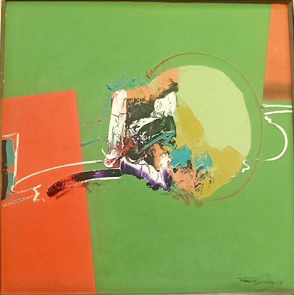 FRANCIS BERNARD, uma (1) pintura abstrata, OST, assinada e datada 88 no CID, medindo 70 x 70 cm, moldura 93,5 x 93,5 cm, (Francisco Carlos Bernard, ...