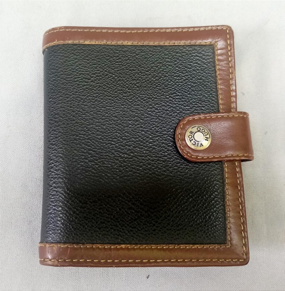 ACESSÓRIO FEMININO, uma (1) carteira em couro, marca VICTOR HUGO, tonalidades preta e marrom, texturizada, fecho de pressão com logo da marca, ...