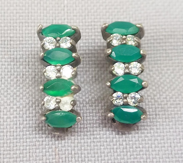 JOIAS, par (2) brincos para orelha furada, confeccionados em PRATA, cravações em esmeraldas, lapidação naveta e quartzo branco lapidação brilhante, ...