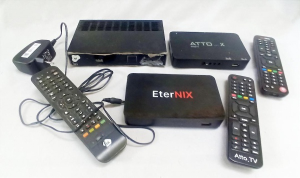 • DIVERSOS, três (3) itens: 3 aparelhos receptores com os respectivos controles, marcas variadas, além de cabos, usados, não testados e sem garantia, vide foto.