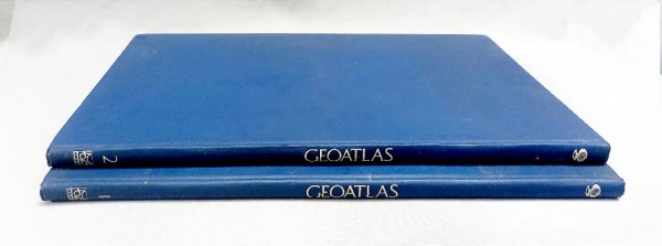 • LIVROS, dois (2) volumes GEORAMA  GEOATLAS, capa dura, fartamente ilustrados, sinais de uso e manchas, vide foto.