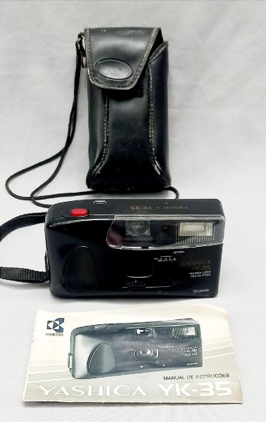 • FOTOGRAFIA, uma (1) câmera fotográfica da marca YASHICA, modelo YK-35, acondicionada em capa de courvin na tonalidade preta, acompanha manual de instruções, usada, não testada e sem garantia, vide foto.