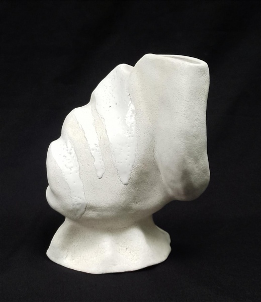 • CERÂMICA, um (1) vaso floreiro amorfo, com esmaltação vítrea na tonalidade branca, assinado NAZARETH VELLOSO, medindo 20 cm altura, vide foto.