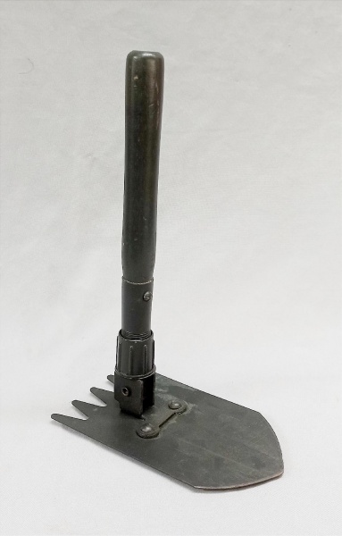 • DIVERSOS, uma (1) pá dobrável, confeccionada em metal, cabo em madeira, medindo fechada 34 cm, vide foto.