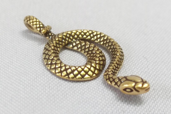 • ESCULTURA, uma (1) miniatura animalista representando COBRA, confeccionada em bronze maciço, medindo aproximadamente 4 cm comprimento, vide foto.