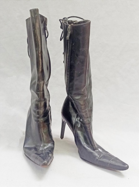 • ACESSÓRIO FEMININO, par (2) botas  de salto alto, confeccionadas em couro, tonalidade preta, tamanho 36, marca GERONEA, fechamento por zíper, faltam as borrachas da ponteira do salto, sinais de uso, vide foto.