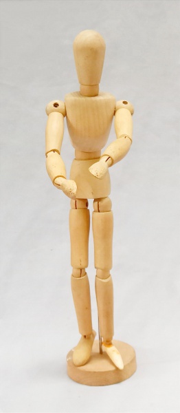 • DIVERSOS, um (1) manequim para desenho, articulado, confeccionado em madeira, um dos pés adaptados, medindo 32 cm altura, sinais de uso, vide foto.