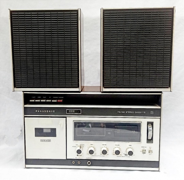 • ELETRÔNICO, um (1) antigo aparelho de rádio AM/FM stereo Cassete (tampa do toca fita solta demanda conserto), usado, não testado e sem garantia, vide foto., marca PANASONIC, modelo RS-2535, Made in Japan, acompanham duas caixas de som.