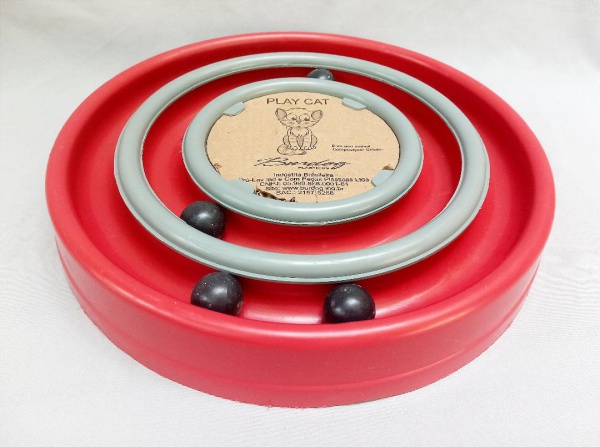 • DIVERSOS, um (1) PLAY CAT, arranhador e brinquedo interativo para gato com duas pistas e quatro bolinhas, confeccionado em polímero na tonalidade vermelha, medindo 41 cm diâmetro, pouco uso, vide foto.