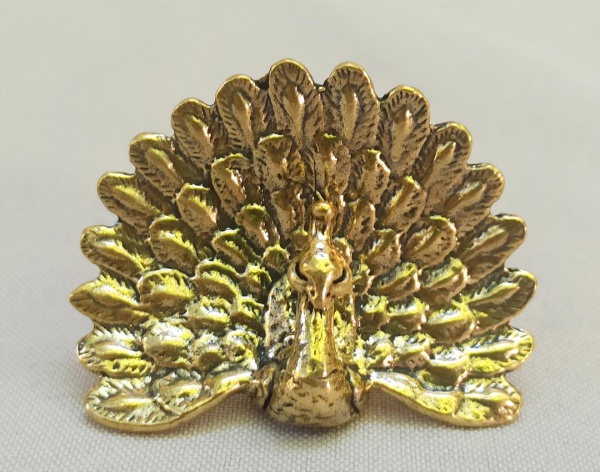 • ESCULTURA, uma (1) miniatura animalista representando PAVÃO, confeccionada em bronze maciço, medindo aproximadamente 5 x 4 x 1,5 cm, vide foto.