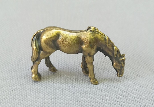 • ESCULTURA, uma (1) miniatura animalista representando cavalo, confeccionada em bronze maciço, medindo aproximadamente 2,5 x 1,5 cm, vide foto.